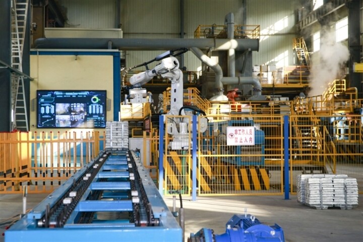 走进青海湘和有色金属有限责任公司电解车间,两条5G全自动智能化锌冶炼熔铸产线火力全开,机械臂精准起落、灵活码垛,AGV无人叉车平稳穿梭、转运物料,一块块锃亮规整的锌锭有序下线、批量成型。车间副主任牛永德正带着班组员工,逐一核对电解槽温、电流参数,紧盯着产线每一处运行细节,在他们的共同努力下,车间日均锌锭产量稳稳突破500吨。