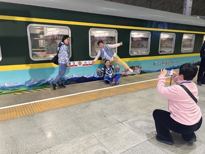 据悉,大美青海、幸福西藏互为邻居,文化旅游资源共享,很多第一次去往西藏的游客都会先将青海作为适应高原气候和青藏旅游的第一站,每年西藏林芝市举行桃花节时,青海的旅行社也会抢抓机遇推出丰富多样的青藏旅游路线和活动。此次开行的Y921次“大美青海·幸福西藏”旅游专列搭载了330名游客开启为期9天的高原踏青赏花之旅,这些游客涵盖华东、华中、华南及港澳等多个地区,其中中老年群体占比超过七成。旅游专列从西宁火车站始发,途径拉萨市直达林芝市,其间将临时停靠唐古拉站和错那湖站,方便游客下车观光。等专列到达林芝市游客下车游玩后,回程也将继续乘坐专列返回,全程无转车后顾之忧。此外,旅游专列全车共配置9节有氧空调卧铺车厢,其中硬卧3节、软卧6节,为适配高原出行需求,车厢内不仅搭载了完善的制氧设备,还配备了专业医护团队与精品餐车,为游客提供全程健康监测、应急医疗保障等贴心服务。同时,专列配备专业导游全程陪同,深度解读青藏地区的人文历史、生态地貌与民俗风情,将高原自然风光与深厚文化底蕴有机融合,为游客打造“快旅漫游、舒适安心”的沉浸式旅行体验。