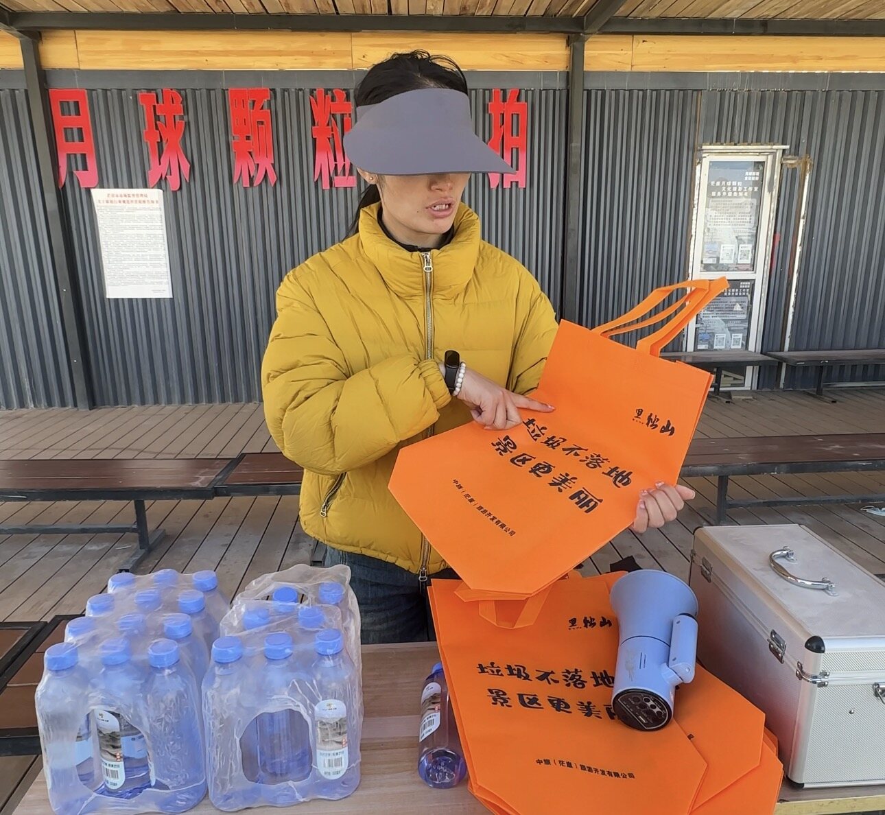 针对这一现状,茫崖市旅投公司以“生态优先”为核心,创新推出环保实践。“环保理念必须从景区管理人员、服务人员和游客同步抓起,从源头筑牢生态保护意识。”茫崖市旅投负责人赵轶锟表示,在景区入口处,工作人员已向游客免费发放环保袋,提前传递生态保护理念;而“烟头换矿泉水”活动,更是让环保行动变得触手可及——游客每捡拾6个烟头,即可兑换一瓶矿泉水。